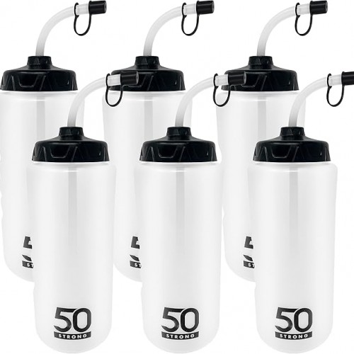 50 Strong 1 Liter BPA-Free Plastic Round Sports Water Bottle with Straw – 6 Pack