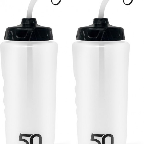 50 Strong 1 Liter Water Bottle with Straw – 2-Pack Easy-Squeeze Sports Bottles with Long Straw & Built-In Finger Grip – BPA-Free – Made in USA – Ideal for Hockey, Football, Lacrosse & Boxing