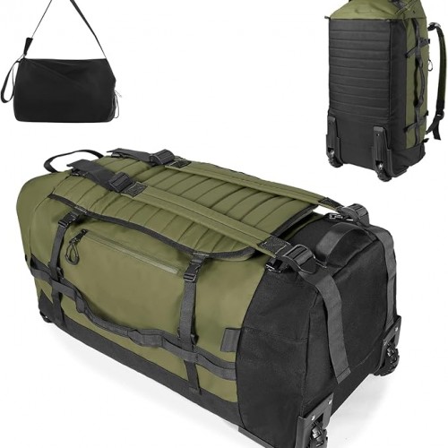 86L 30” Folding Duffle Backpack with 2 Wheels,Travel Bag with Separate Shoe Compartment,Army Green