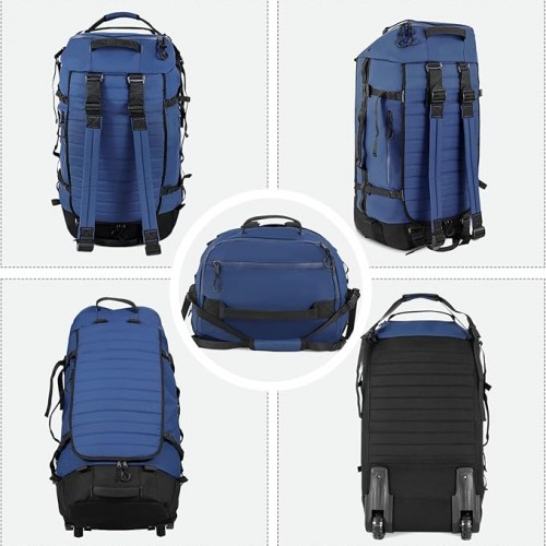 86L 30” Folding Duffle Backpack with 2 Wheels,Travel Bag with Separate Shoe Compartment,Navy Blue