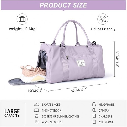 Womens travel bags, weekender carry on for women, sports Gym Bag, workout duffel bag, overnight shoulder Bag fit 15.6 inch Laptop (Large, Purple)