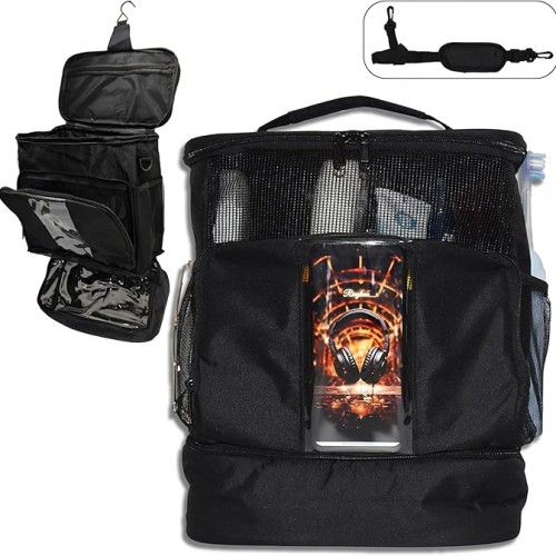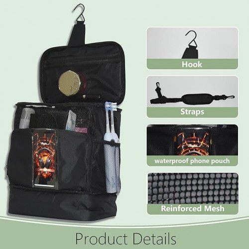 Large Mesh Shower Bag,Portable Shower Tote,Hanging Toiletry Bag for College Dorm, Bathrooms, Gyms, Travel, Camping, Swimming, and RVs(with straps) (Black)