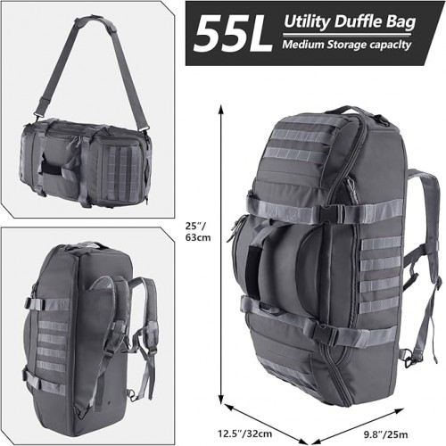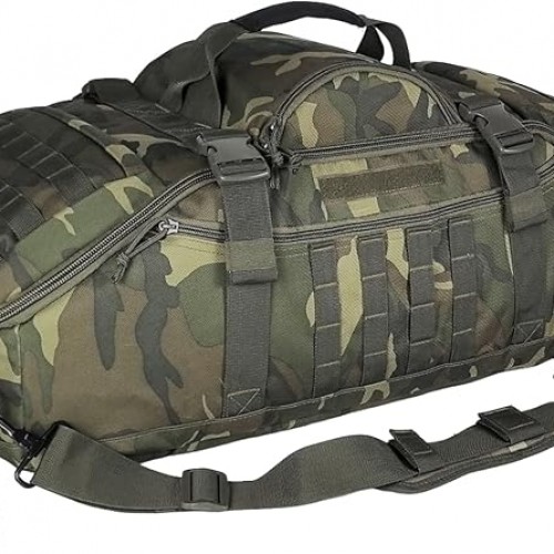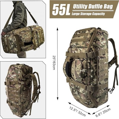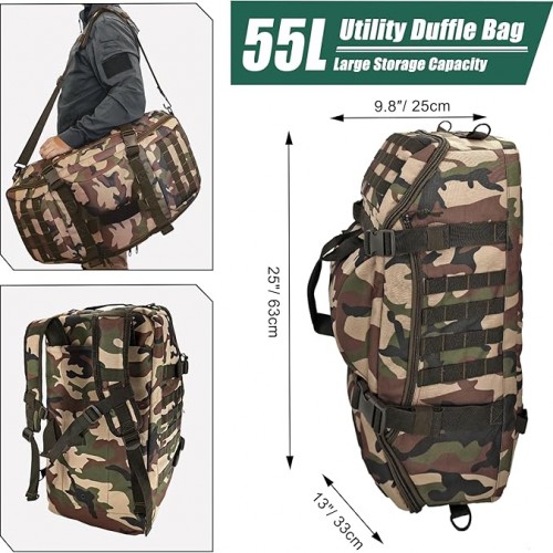 55L Large Duffle Bag, 3-in-1 Tactical Backpack MOLLE Pack for Sports, Gym, Outdoor, Woodland