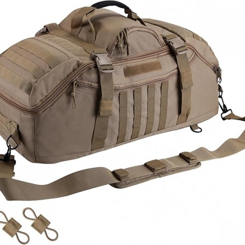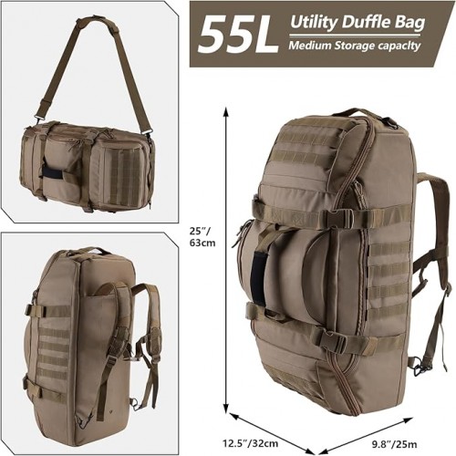55L Large Duffle Bag, 3-in-1 Tactical Backpack MOLLE Pack for Gym, Sports, Outdoor, Coyote