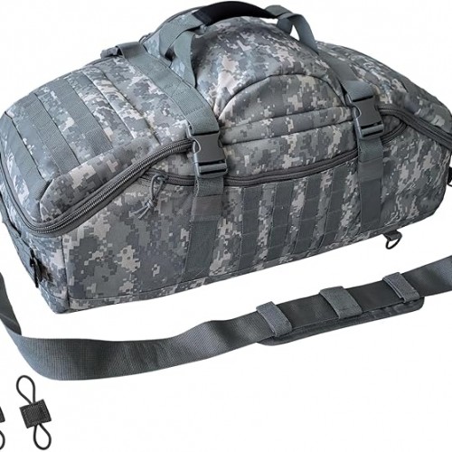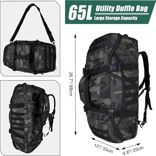 65L Large Duffle Bag, 3-in-1 Tactical Backpack MOLLE Pack for Sports, Gym, Outdoor, Black Camo