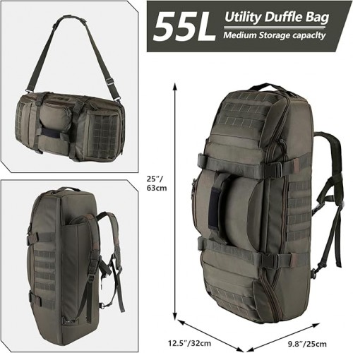 55L Large Duffle Bag, 3-in-1 Tactical Backpack MOLLE Pack for Sports, Gym, Outdoor, Olive Green