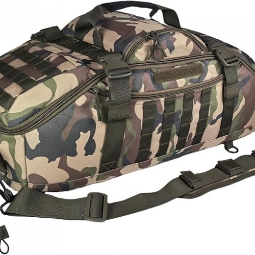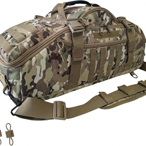 55L Large Duffle Bag, 3-in-1 Tactical Backpack MOLLE Pack for Gym, Sports, Outdoor, Black Camo