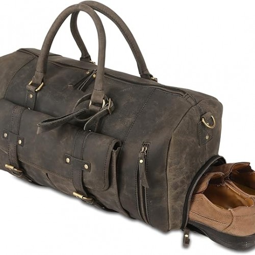 Leather Travel Duffle Bags for Men and Women cabin friendly Weekend Bag Sports Gym airplane carry on overnight duffel