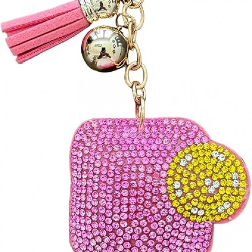 Crystal Studded Pickleball Paddle Keychain | Pink | Perfect Addition To Your Bag, Adjustable