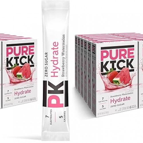 Pure Kick Hydration Singles To Go Drink Mix, Strawberry Watermelon, Includes 12 Boxes with 6 Packets in each Box, (Pack of 144)