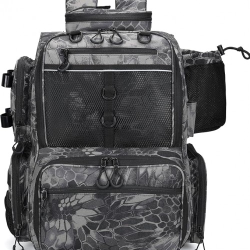 Rabjen Fishing Tackle Backpack with Rod Holders, Bottle Holder, Storage Bag Store Fishing Gear