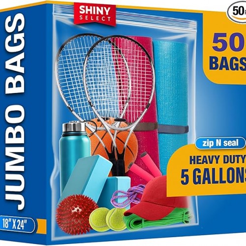 X-Large Bags, Jumbo Big Zip & Lock Freezer & Storage Bags, 5 Gallon, 18″x24″ Clear, 50 Pieces
