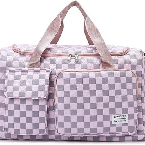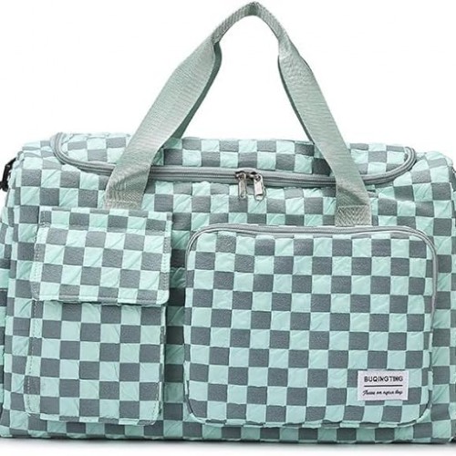 Weekender Duffel Sport Gym Bag Overnight Travel duffle Bags with Wet Pocket S1-Check Green