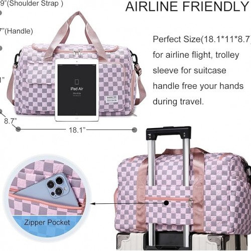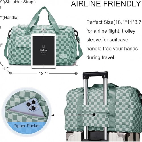 Weekender Duffel Sport Gym Bag Overnight Travel duffle Bags with Wet Pocket S1-Check Green