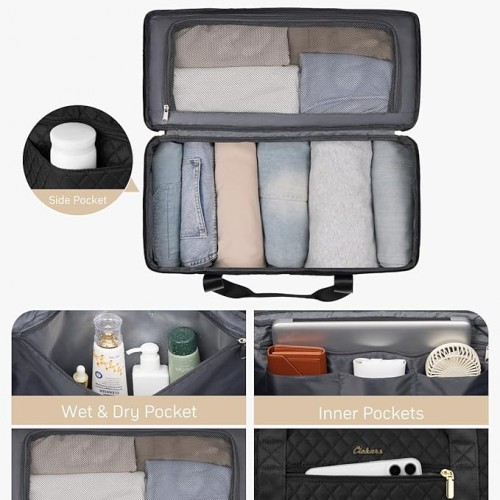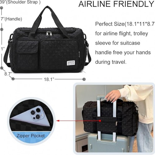 Weekender Duffel Sport Gym Bag Overnight Travel duffle Bags with Shoe Compartment Wet Pocket G-Black