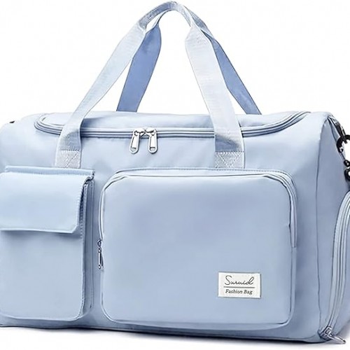 Sports Gym Duffel Bag with Shoes Compartment and Dry Wet Separated Pocket for Men and Women – Blue