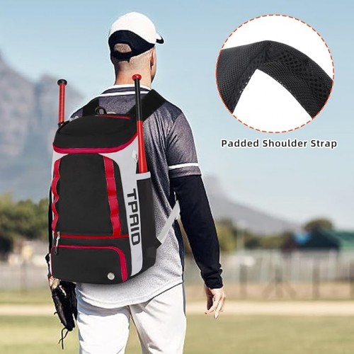 TPAID Baseball Backpack Large Capacity Softball Bag with Shoes Compartment and Fence Hook, Lightweight Baseball Equipment Bag Holds Bats, Helmets, Gloves, Hats, Clothes, Shoes