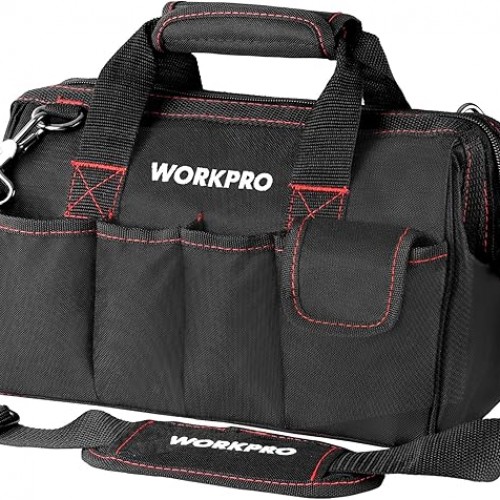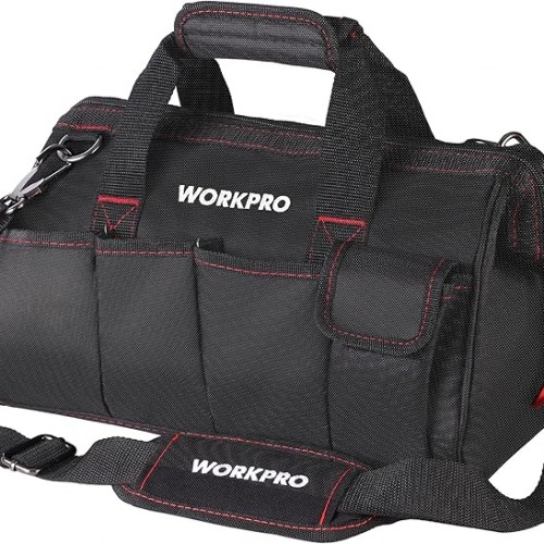 WORKPRO 16-inch Close Top Wide Mouth Tool Storage Bag with Water Proof Rubber Base, W081022A, 16″