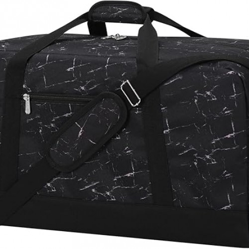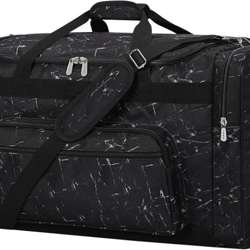 55L Mens Duffle Bag for Travel – 25 inch Sports Duffel Bag with Hard Bottom – Marble Black