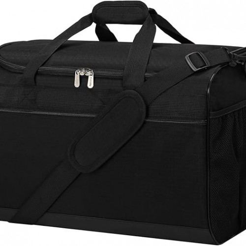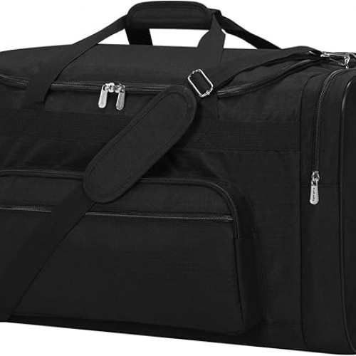 55L Large Duffle Bag for Men Travel – 25 inch Weekender Duffel Bag with Hard Bottom – Black
