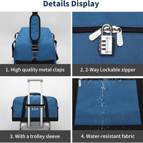 - Large Capacity: The men’s weekender bag measures 21 x 11 x 11 inches (capacity about 40 liters), with ample capacity to hold all the items you need for a short trip, perfect for a 3-4 day business trip or weekend trip