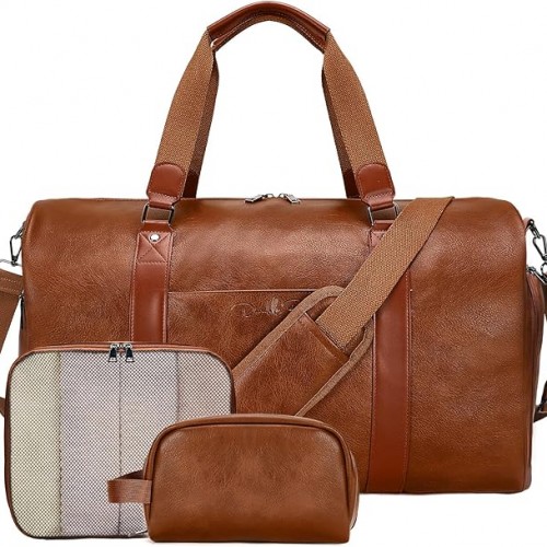3-in-1 Leather Duffle Bag with Toiletry and Shoe Compartment, Weekender Overnight Gym Bag for Men and Women, Carry On Fits Most 15.6 Inch Laptops(Black)