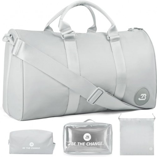 4Pcs/Set Waterproof Sports Duffel Bag 1000D Nylon Durable Gym Bags for Men and Women Overnight Bag with 3 Accessory Bags of Wet & Dry Separation Upgrades 2.0 White