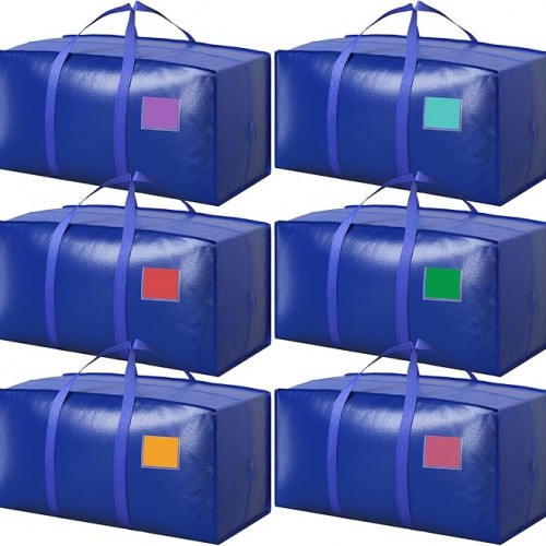 6 Pack Extra Heavy Duty Large Moving Bags with Reinforced Zipper & Wide Handles, Waterproof Storage Bins for Clothes, College Dorm, Travel, and Home Organization, White