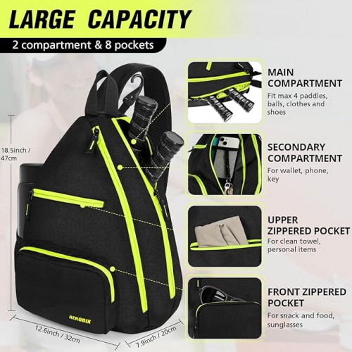 - LARGE CAPACITY: The spacious pickleball bag measures 12.6 x 7.9 x 18.5 inches, capable of holding up to 4 paddles and additional equipment. It is ideal for players seeking a roomy, durable, and practical bag.