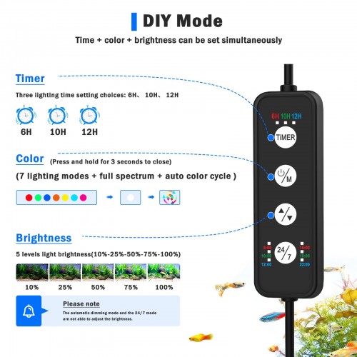 AQQA LED Aquarium Light, 24/7 Mode Clip on Fish Tank Light with Memory Function, DIY Mode Full Spectrum Aquarium Plant Light, Ad