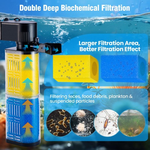 Aquarium Filter for 30-100 Gallons, Ultra-Quiet Fish Tank Filters Biochemical Filtration 400GPH Powerful Pump Submersible Sponge