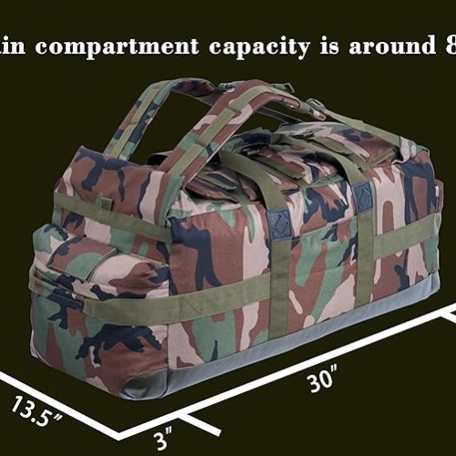 - This extra large military style duffle bag backpack could be used as emergency go bag, EMS bag, deployment bag, load out bag, holdall bag, carryall bag, as well as sports gym bag and bugout bag.