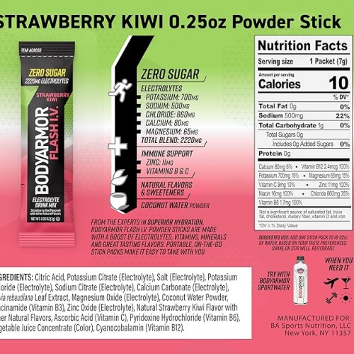 - Elevate your water game with BODYARMOR FLASH I.V. electrolye powder sticks, the ultimate on-the-go hydration booster expertly crafted for your active life