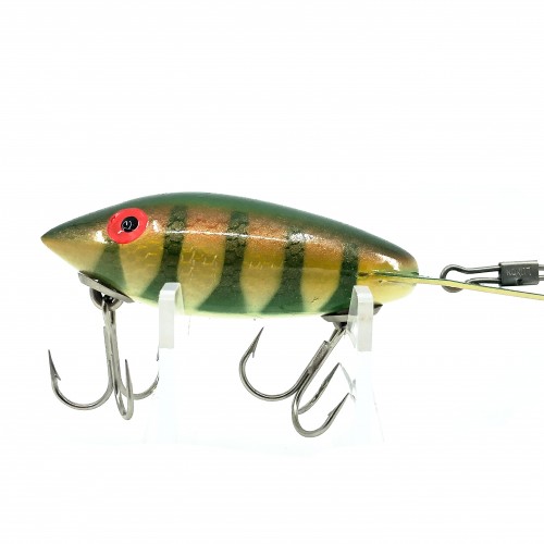 Bomber 400 Series, #07 Yellow Perch Color. About 3 1/4″ long. This bait is used but appears to have never been fished before and is in overall great condition. One of the all time greatest lures in an iconic color. Fish or collect. See photos. Vintage plastic version with rattles.