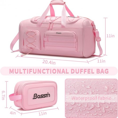 Bosstin Gym Bag for Women & Men,45L Travel Duffle Sports Duffel Bag Gym Weekender Overnight Backpack with Shoe Compartment (3PINK)