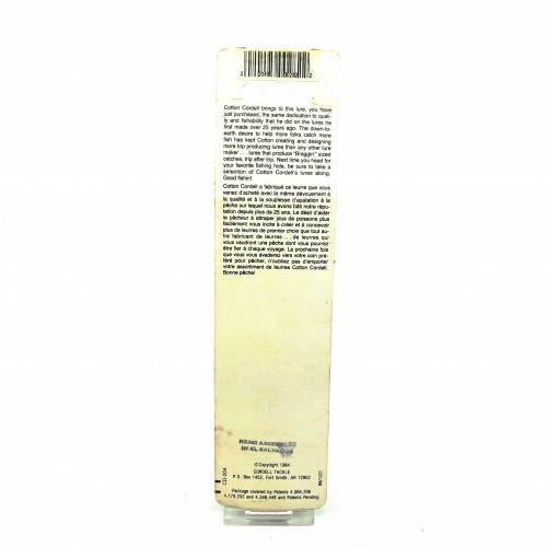 Cotton Cordell Ratlin Red Fin C822, Perch Color on Card. About 4 1/4″ long. Card is used with some minor wear but in overall good condition. Lure is new inside card, see photos. Fish or collect.