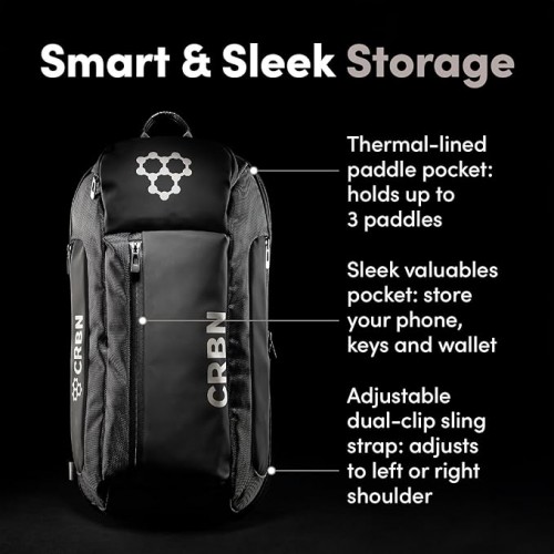 CRBN Pickleball Sling Bag – Pro Team Pickleball Bag – Water-Resistant Pickleball Paddle Bag Holds 3 Paddles, Balls & More