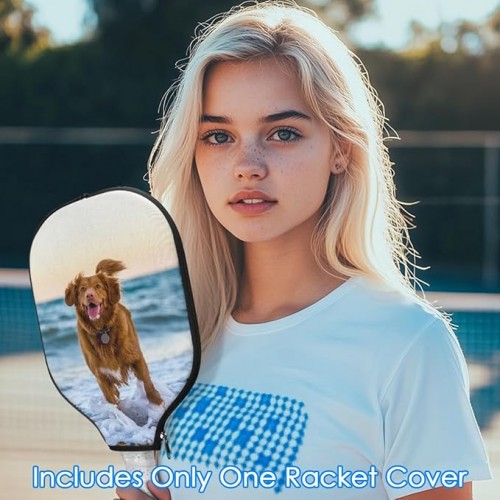 Custom Pickleball Paddle Cover, Personalized Zippered Racket Sleeve Case, Double-Sided Print Customize Photo Name Logo, Padded Protection Holder for Single Paddles, Water-Resistant Storage Bag