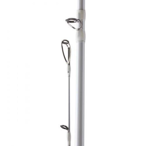 The blank achieves its incredibly thin diameter thanks to a combination of HVF Nanoplus Carbon Technology and X-45 Bias Construction. The former of which reinforces the rod blank via micro-level arrangement of material in the plastic resin for more strength from less material, while the latter prevents twisting and ovalization, ensuring the rod is exhibiting its optimal parabolic bend. The innovative Fuji FazLite K-Guides are virtually tangle-free and leave a minimal footprint on the bend of the rod. The four models are designed for braided line classes ranging from 30 to 65 pound test. The smart, white appearance belies its strength.