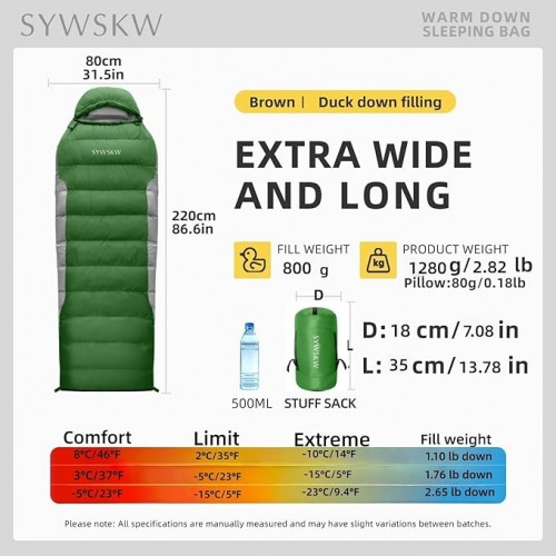 Down Sleeping Bag with Pillow, Ultralight Rectangular Sleeping Bag for Adults, Youth Backpacking,Hiking and Camping Outdoor with YKK Two-Way Zipper 680 FP Down