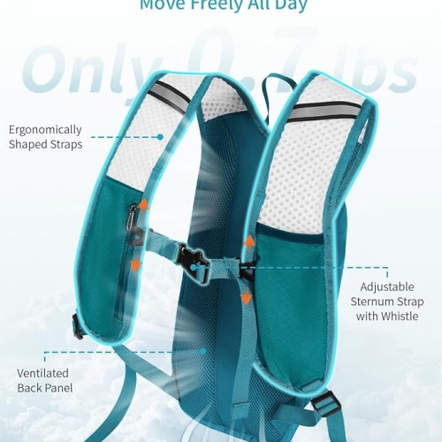 - 【Lightweight Design with Comfortable Fit】 Compact and lightweight hydration pack reduces shoulder strain. Adjustable shoulder and chest straps create a secure, bounce-free fit for both men and women.