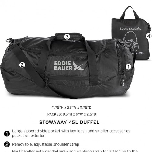 Eddie Bauer Stowaway Packable Duffel Bag | Travel | Foldable | Lightweight | Durable | Ripstop Polyester