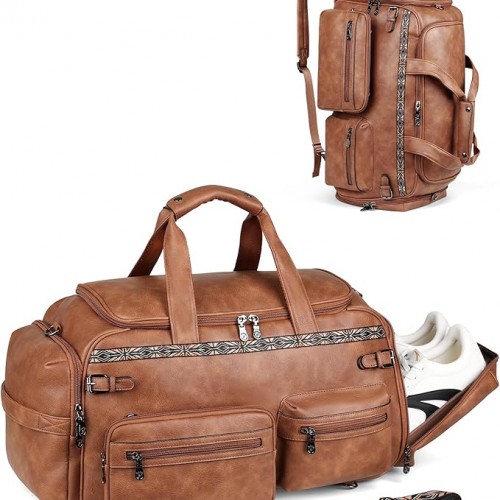 FADEON Duffle Bag for Women, Large Convertible Carry on Overnight Backpack, Designer Leather Mens Weekend Bags for Travel