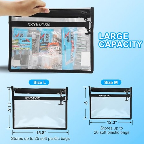 - Large-Capacity Multi-Purpose Storage – Available in medium (9“ x 12”) and large (11.8“ x 15.8”) sizes, this versatile storage bag offers ample space to easily hold soft baits, lures, tools, hooks, boat documents, and more, providing anglers with flexible storage solutions.