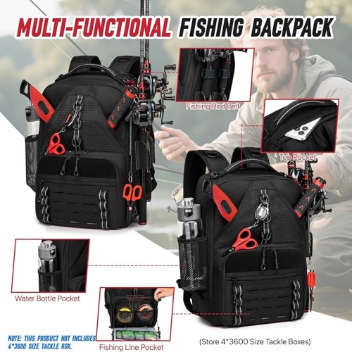 - Upgraded durability: This product does not include 4 tackle boxes.Fishing backpack 16.5*11.4*7in/26L,made of waterproof and wear-resistant high-density 600D Oxford fabric. When you use it in various outdoor activities, it protects your fishing rods, gear and items,stored neatly and cleanably