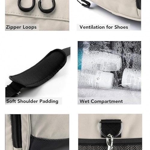 - WITH EXTRA SHOE POCKET & WET POCKET – Equipped with an isolated waterproof wet pocket, it’s great for storing swimwear or sweaty workout wear. The shoe compartment is ventilated, ensuring your sneakers are stored separately and orderly.