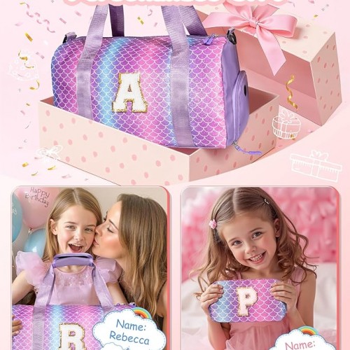 Gifts for 3 4 5 6 7 8 9 Year Old Girls-Girl Gym Bag with Shoe Compartment, Kid Personalized Weekender Overnight Bags, Initial Travel Tote with Makeup Pouch, Easter Gift for Teen (Letter C)