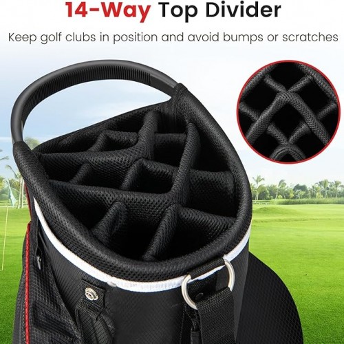 - 【14-Way Organizer Top Dividers】 The golf cart bag features a 14-way top divider that is able to keep golf clubs in position and avoid bumps or scratches. Note: The golf clubs are not included.