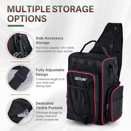 Goture OpenSide Tactical Sling Tackle Bag with 3 3700 Tackle Trays, Lightweight Fishing Backpack Storge Fishing Gear – Black Bag Outdoor,Gift for men