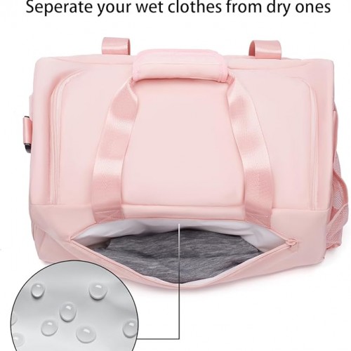 - DRY & WET SEPARATION: The small gym bag for women is well thought out with a dry & wet compartment separation. It uses waterproof PVC lined with smooth zipper closure, good for storing wet clothes and swimsuits. Workout will be a breeze with this gym bag.